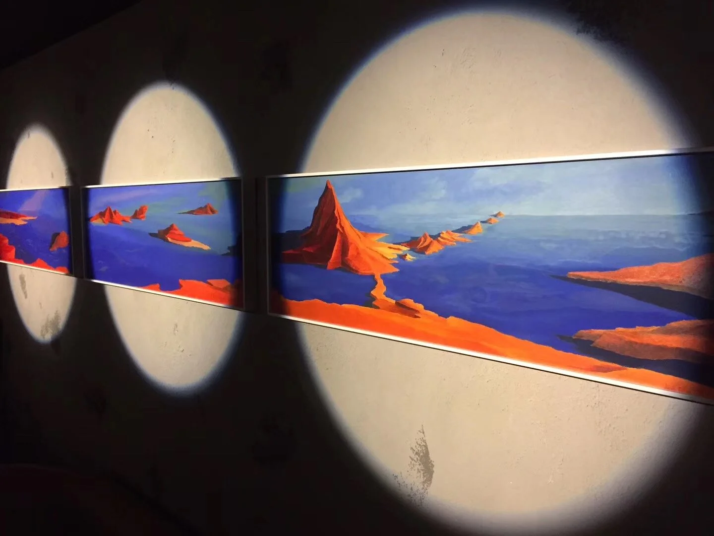 Untitled, 2019, Oil on wood board, 12 x 108 in triptych. Previously on view at the 50/50 Bar in Beijing, China.