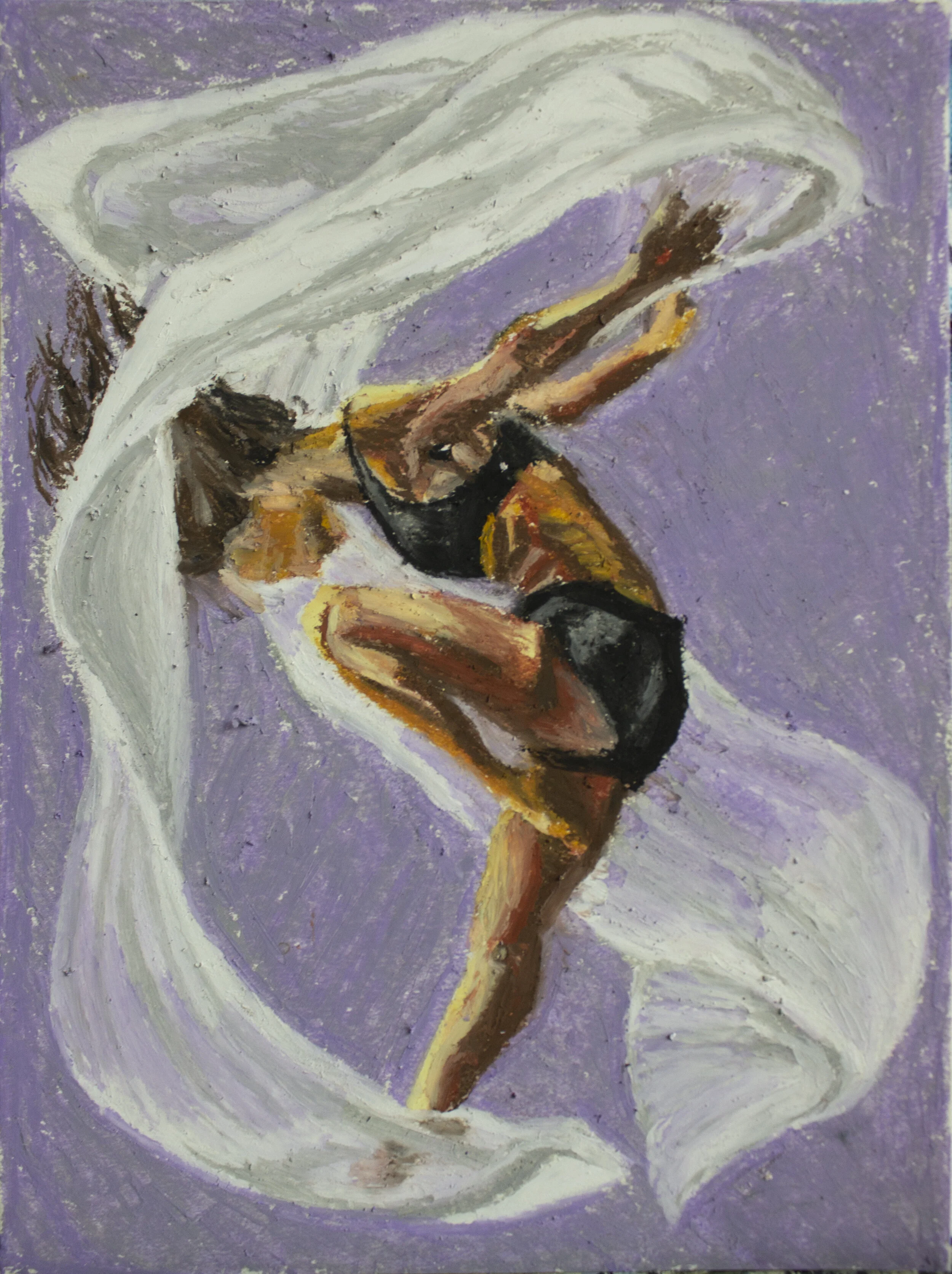 Dancer with Fabric, 2021, Oil pastel on paper 8 x 6 in